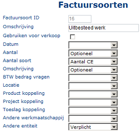 Bij de factuursoort dienen de volgende opties aangezet te worden.