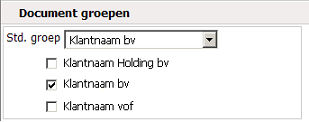 Onder de standaard groep kunnen de document groepen geslecteerd worden. De aangevinkte document groepen worden vervolgens beschikbaar bij de optie Uitvoer in de processen.